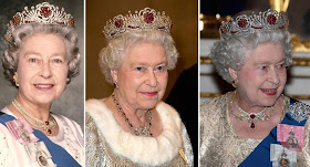 Questo gioiello, di proprietà di sua madre, è stato ricevuto da Elisabetta II in eredità dopo la sua morte nel 2002, quindi lo ha usato molto raramente. Originariamente apparteneva alla regina Vittoria, un regalo di suo marito Alberto e realizzato da Garrard nel 1853. Invece di rubini aveva opali e, essendo i disegni floreali su una base indù, è stata spesso indicata come la tiara rubino indiana o, semplicemente, "tiara indiana".
